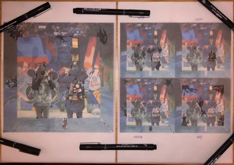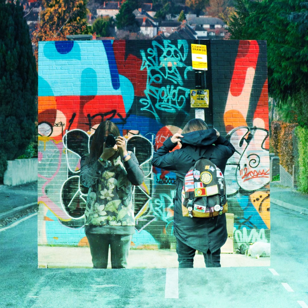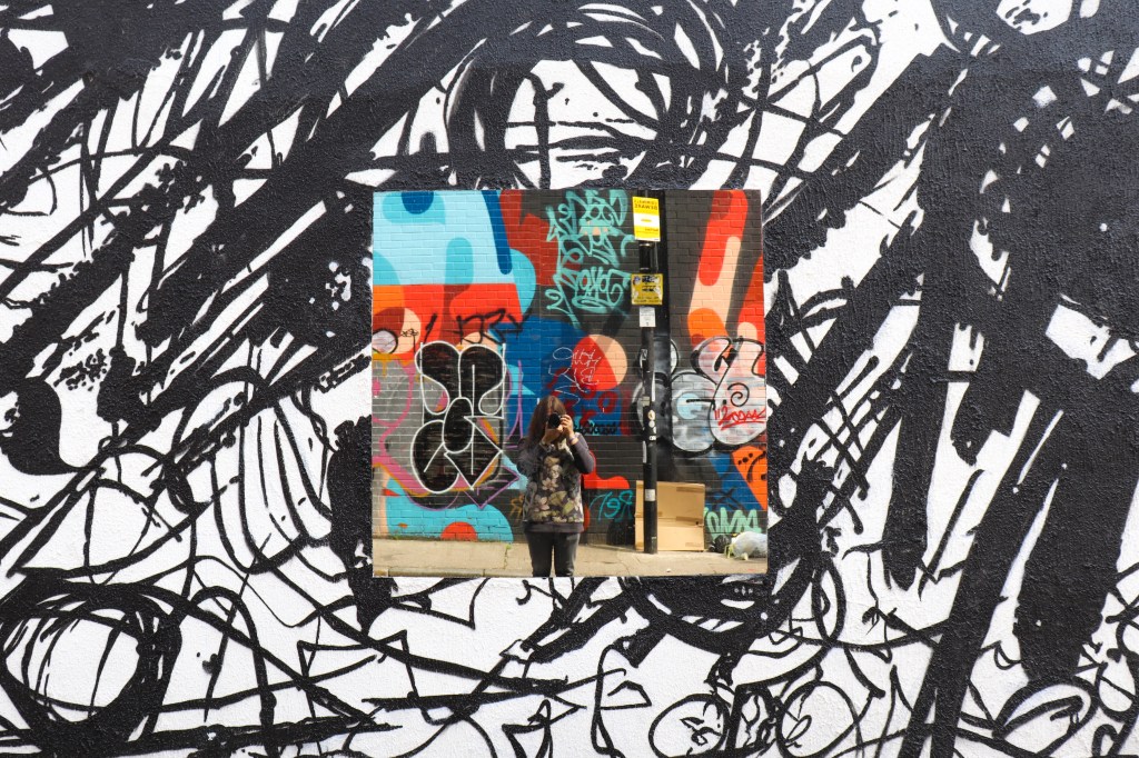 I first of all decided to make a collage to include all 4 images presented above so that they would all flow into 1 harmonious image, it gave this image above. My initial idea was to create a collage as I have always been a huge fan of using various elements to create 1 final outcome. I cropped, layered & assembled all 4 images (the scuba diving one I used as the overall blueish filter mainly to convey the cold icy feeling I feel from moving from a tropical country to… England). The “where” image, which is the outer layer of the whole image, is there as it conveys the surroundings. The picture that answers “who” & “why” (the 2 images of me), are placed there as the centre of the image. I chose to include all the graffiti I photographed to make sure they viewer had a lot of content: I absolutely love graffiti, & the fact that it makes the whole design look like there is a lot going on reflects my brain on a daily basis.