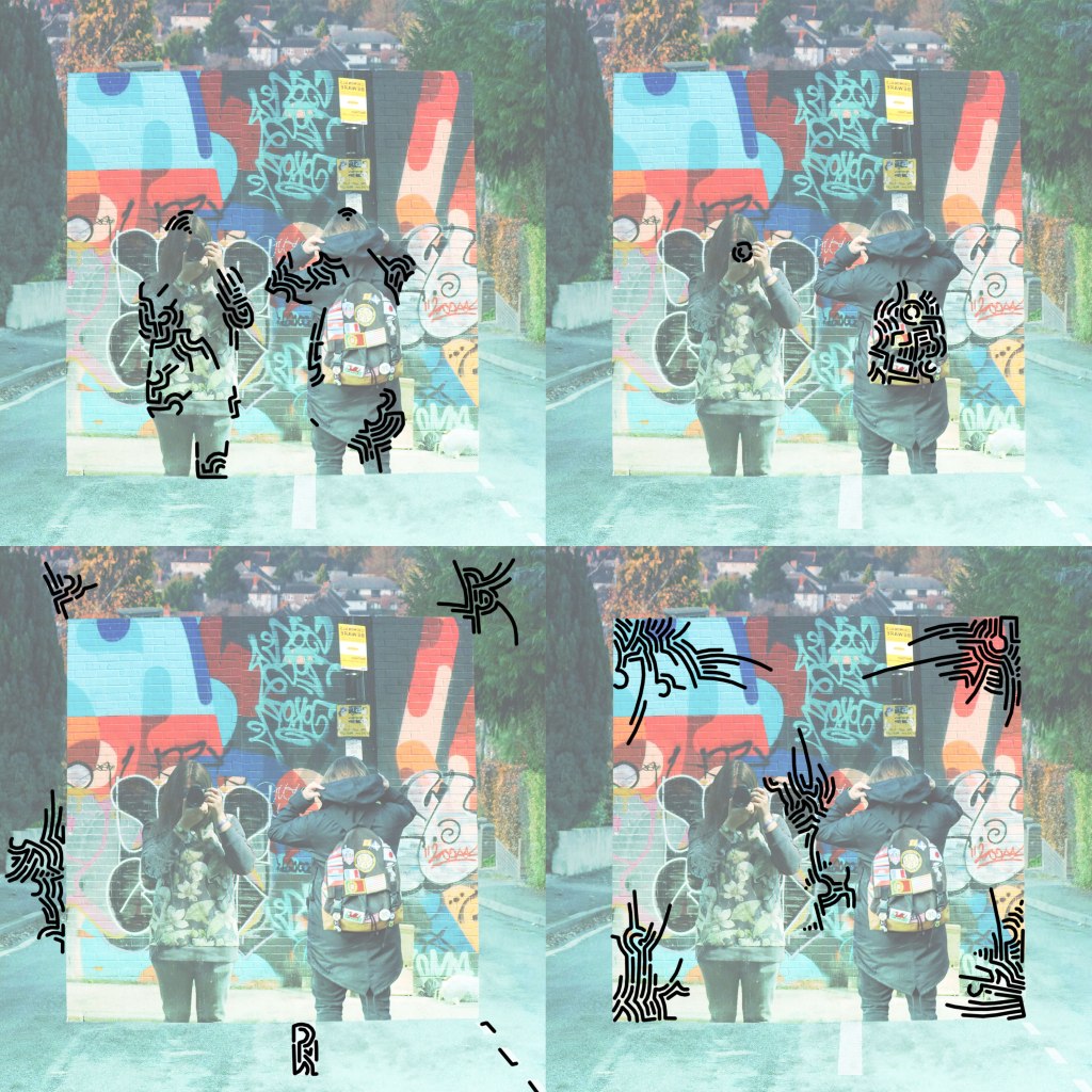 This quadriptych showcases who I am as a designer due to the various elements incorporated. Each image answers one of the following questions: who? what? where? why? & having them all layered in harmony symbolises them blending together into the person & artist that I am today. The line drawings are a very prominent element to my work. I developed them from when I was around 15 through finding something that “has meaning to me.” Here, we can see them highlighting the different parts of the image, answering each question in each frame. These lines aren’t just random to me, they represent my identity as a designer, & give me hope when creating something. With this said, nowadays I try to incorporate them when I believe they are fit on an album artwork, they are in a way, my signature, & just like finger prints, every single one is unique.