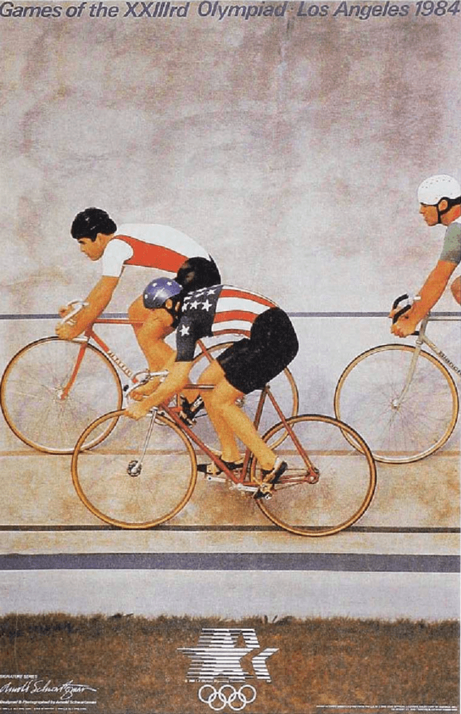 What initially started my research for this week was Arnold Schwartzman’s 1984 Olympic poster, which was found in the resources section. I’m a huge fan of those designs that immediately strike a double meaning without it being forced into it. That means the double meaning being smoothly integrated within the design. Such an example of this approach is Arnold Schwartzman’s 1984 Olympics Poster, portraying track cyclists, with the Olympic ring portrayed by the overlap of the wheels.