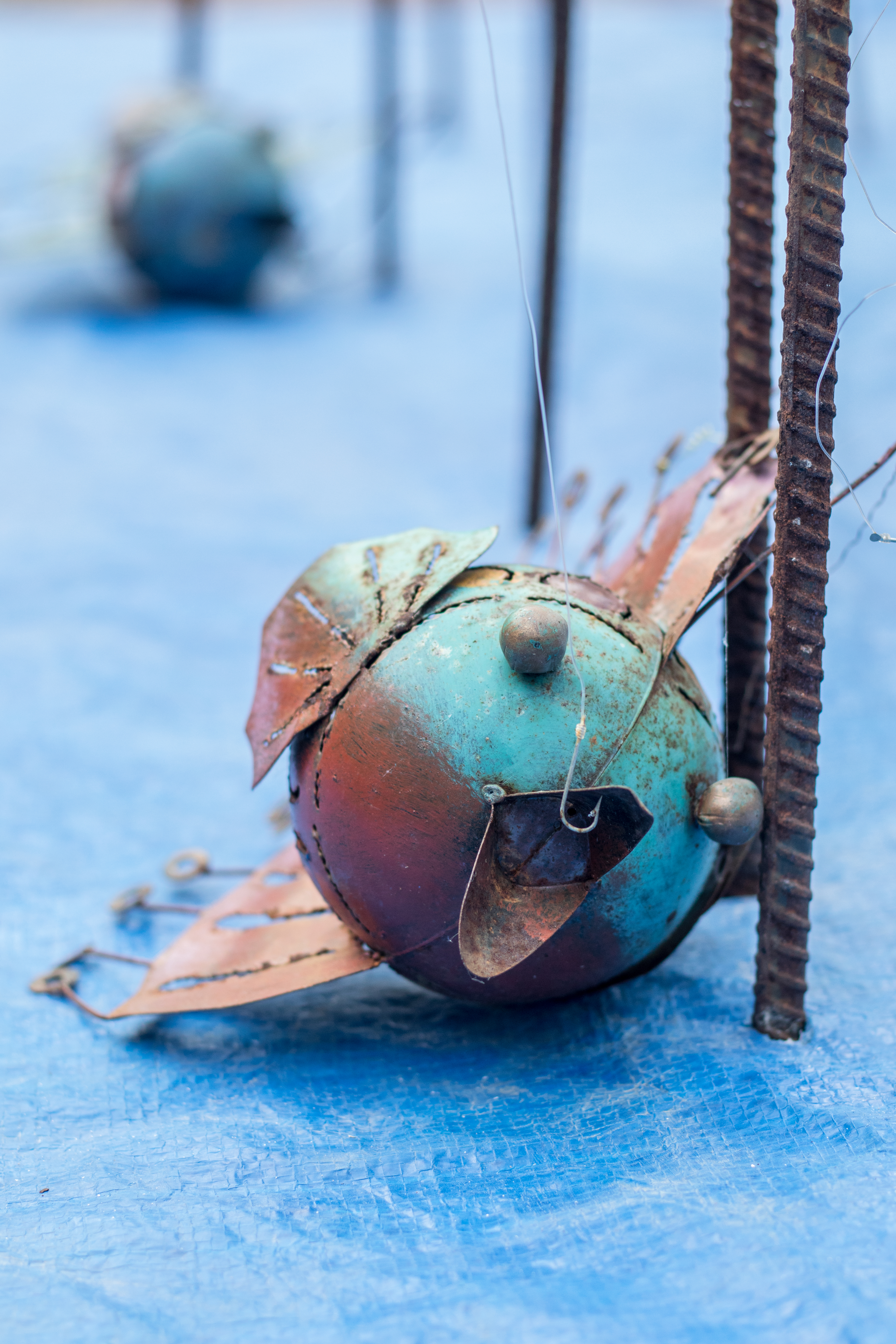 Now the long hours of drawing up the fish & letters, measuring metal rods, cutting them, making holes, hammering them in, & the task that took the longest time: untangling the fishing nets.