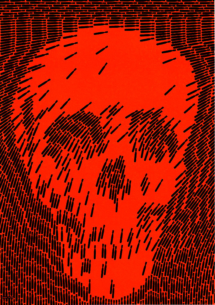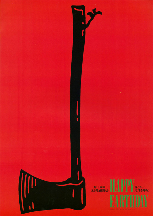 I’ve always been very inspired by Shigeo Fukuda’s work. He was mainly known for being an illusionist, who often focused on the emotion of deception in his designs. A lot of his work includes a double meaning which usually needs a more interested second look to notice. “Anti-war Poster” shows the arrangement of hundreds of little nuke drawings into forming a skull, representing death, war, & the anger associated with such an immoral practice. “Happy Earth-day” portrays an upside down axe, which is ironically made from wood, with a tree attempting to grow at the extremely, portraying the juxtaposition between celebrating earth day yet continuing to chop down thousands of trees per day. I love his minimalism and symbolism, & I will definitely keep him in mind when coming up for this week’s final outcome.